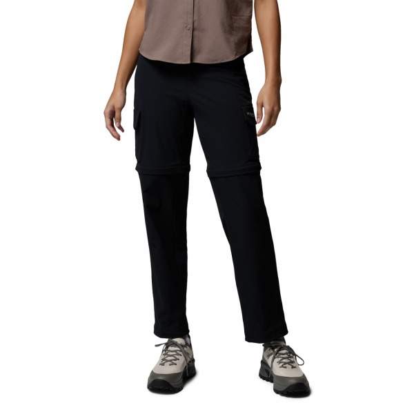 Spodnie turystyczne damskie Columbia Silver Ridge Elite Convertible Pant posiadają możliwość odpięcia nogawek, przekształcając je w wygodne krótkie spodenki. Wyposażone są w liczne kieszenie: dwie boczne, dwie na udach, dwie tylne, w tym jedną zapinaną, a także zapinaną kieszonkę i specjalną kieszonkę, zapewniając funkcjonalność podczas wędrówek. Artykułowana strefa kolan poprawia swobodę ruchów, a dolny obwód nogawek regulowany za pomocą ściągacza pozwala na indywidualne dopasowanie.